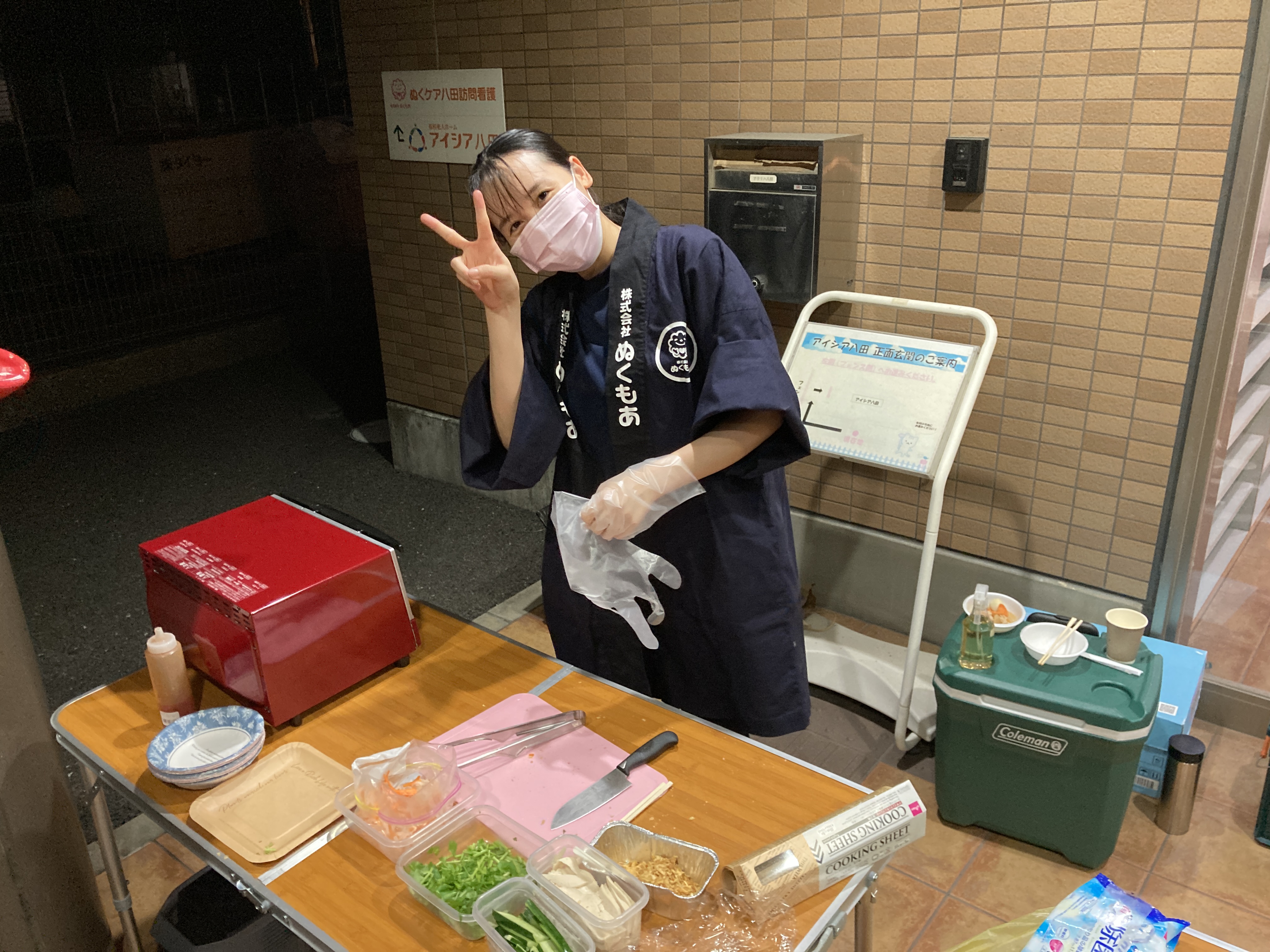 本日は、アイシア八田にて出前屋台を開催しました☆ みんな大好きな焼肉、焼き鳥、ソーセージ、豚汁に加えベトナムの人気サンドイッチ「バインミー」も新登場!! 協力会社様にもご参加いただきました♪ 食後には、スイーツも登場甘いひと時に笑顔が溢れました♪ 最後にみんなで記念撮影☆ 次回の開催もどうぞお楽しみに♪