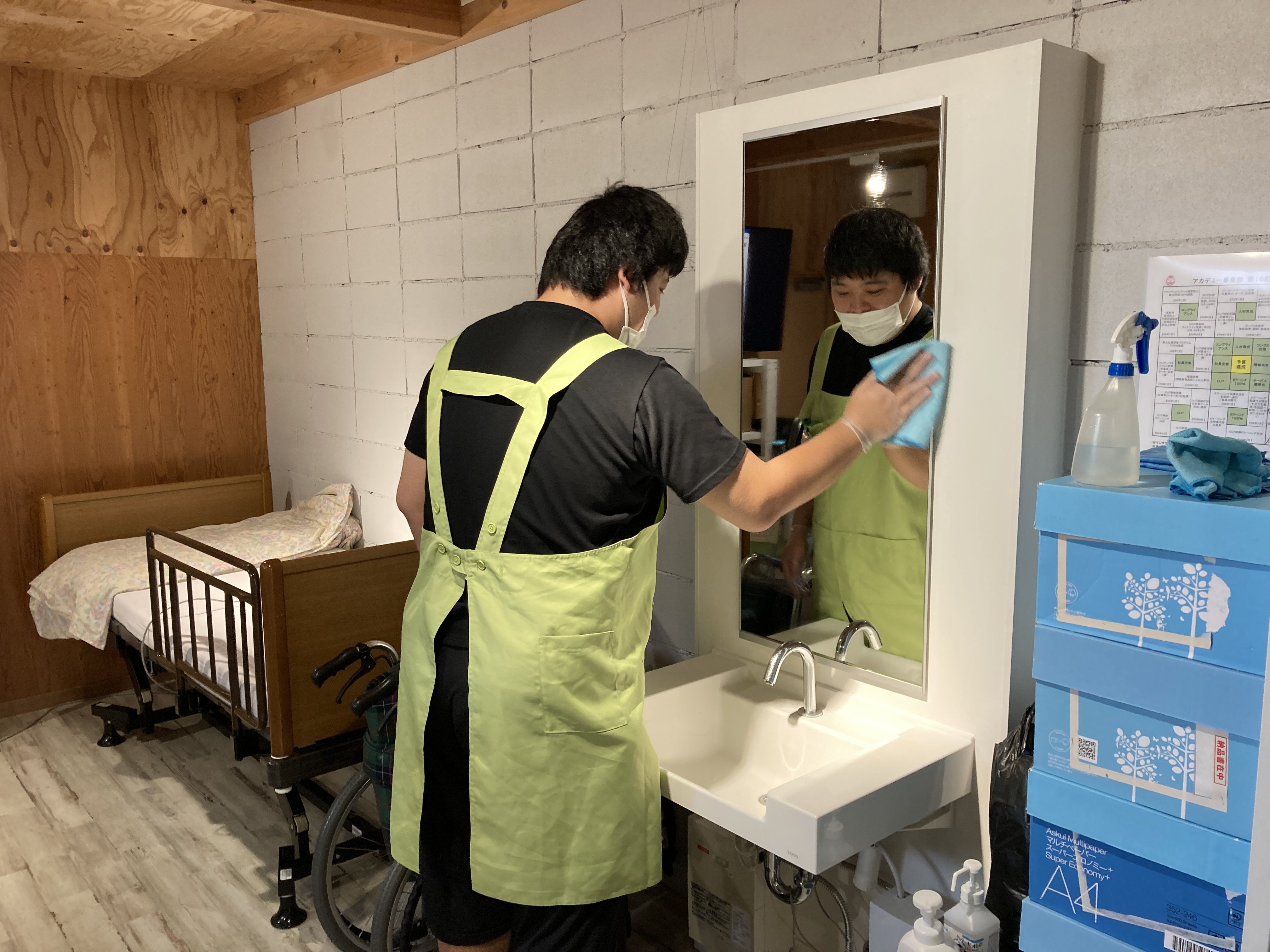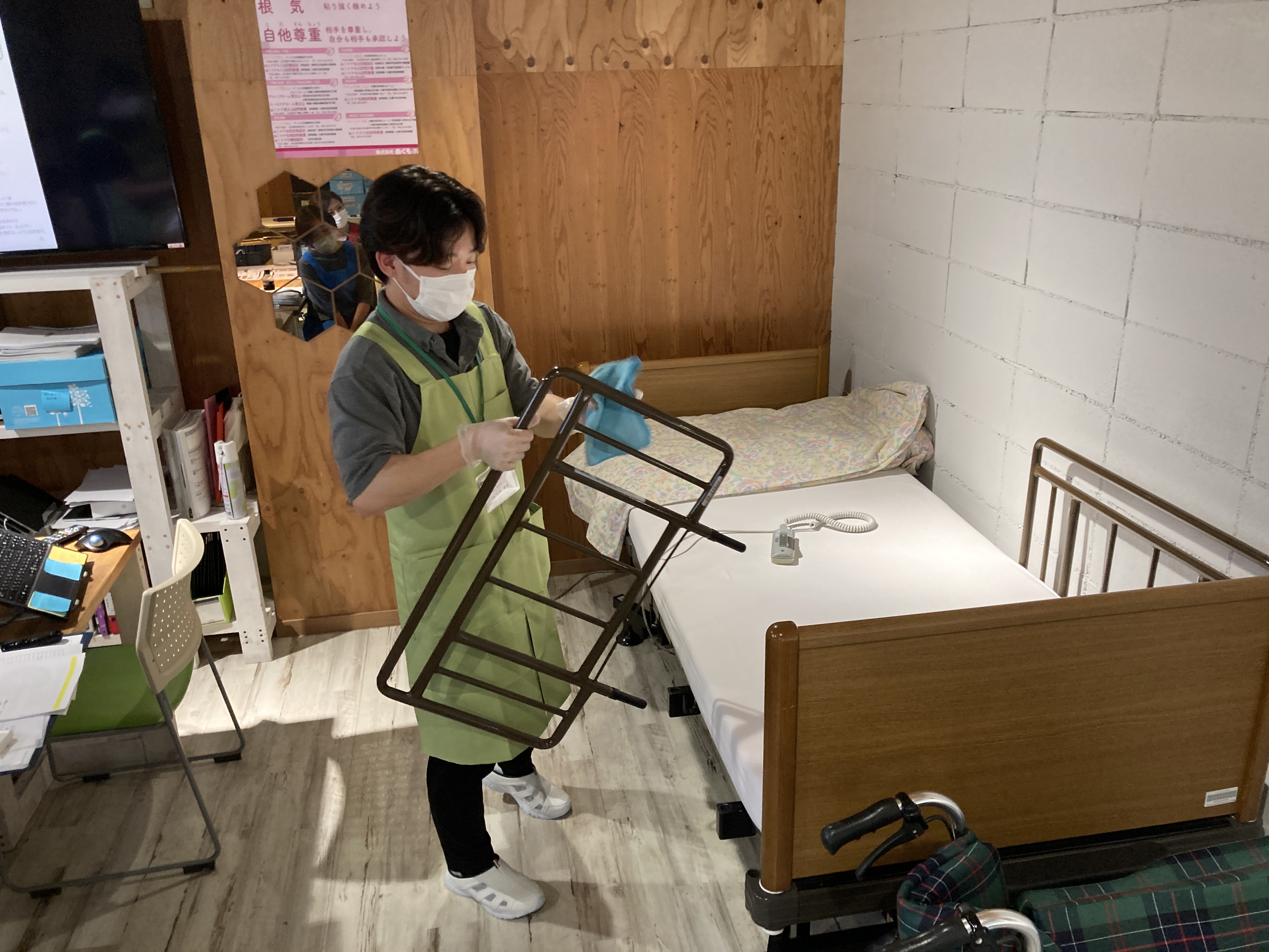 ・ご入居者様に清潔に保つ、整頓されている環境を提供するのはもちろん、ご家族様などの来訪時にも不快感を与えないように整理整頓、清潔に過ごしていただくよう気をつけたいと思いました。