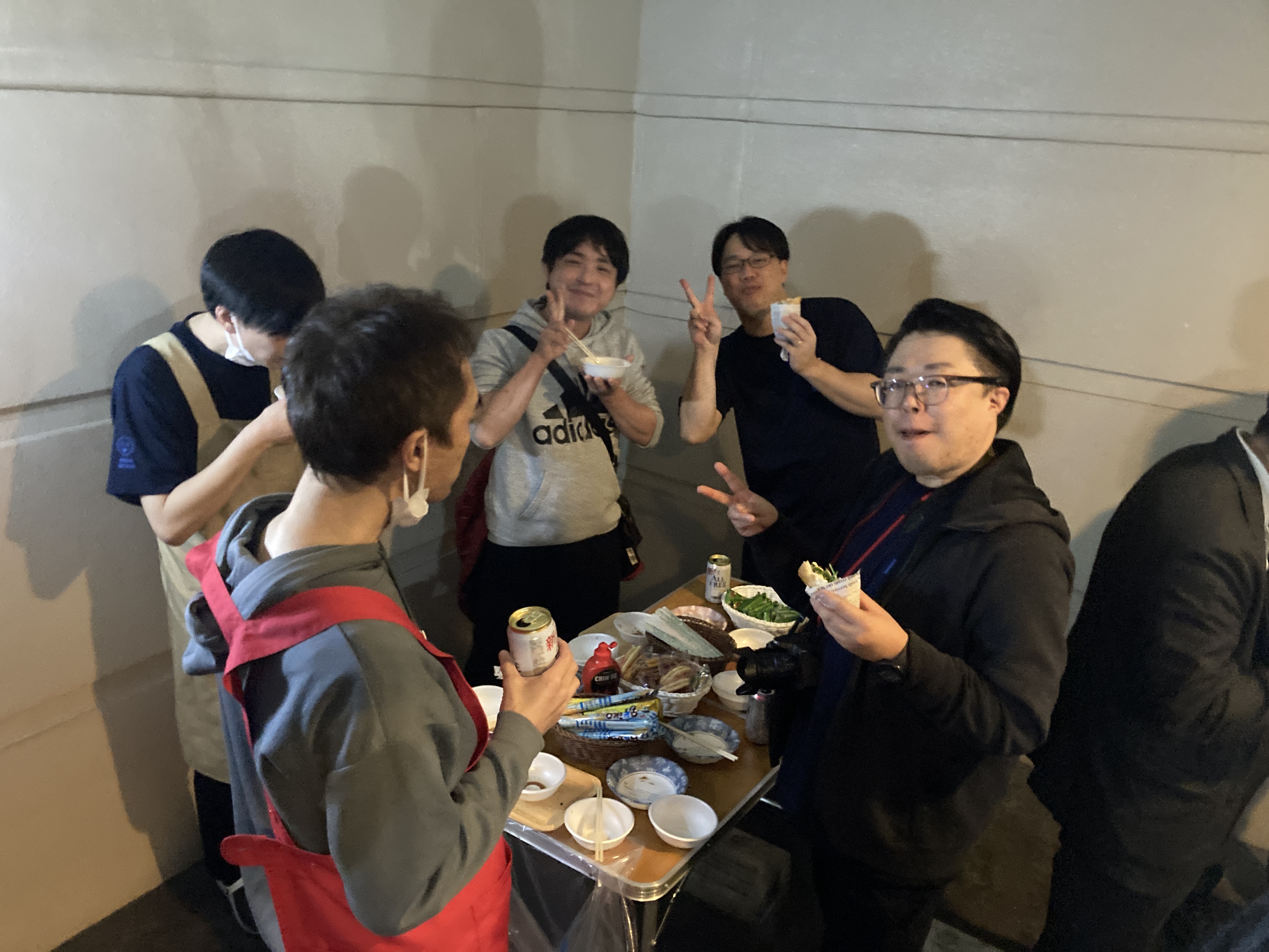 本日は、アイシア浄心にて出前屋台を開催しました☆ みんな大好きな焼肉、焼き鳥、ソーセージ、豚汁に加えベトナムの人気サンドイッチ「バインミー」も新登場!! 協力会社様にもご参加いただきました♪ 食後には、スイーツも登場甘いひと時に笑顔が溢れました♪ 最後にみんなで記念撮影☆ 次回の開催もどうぞお楽しみに♪