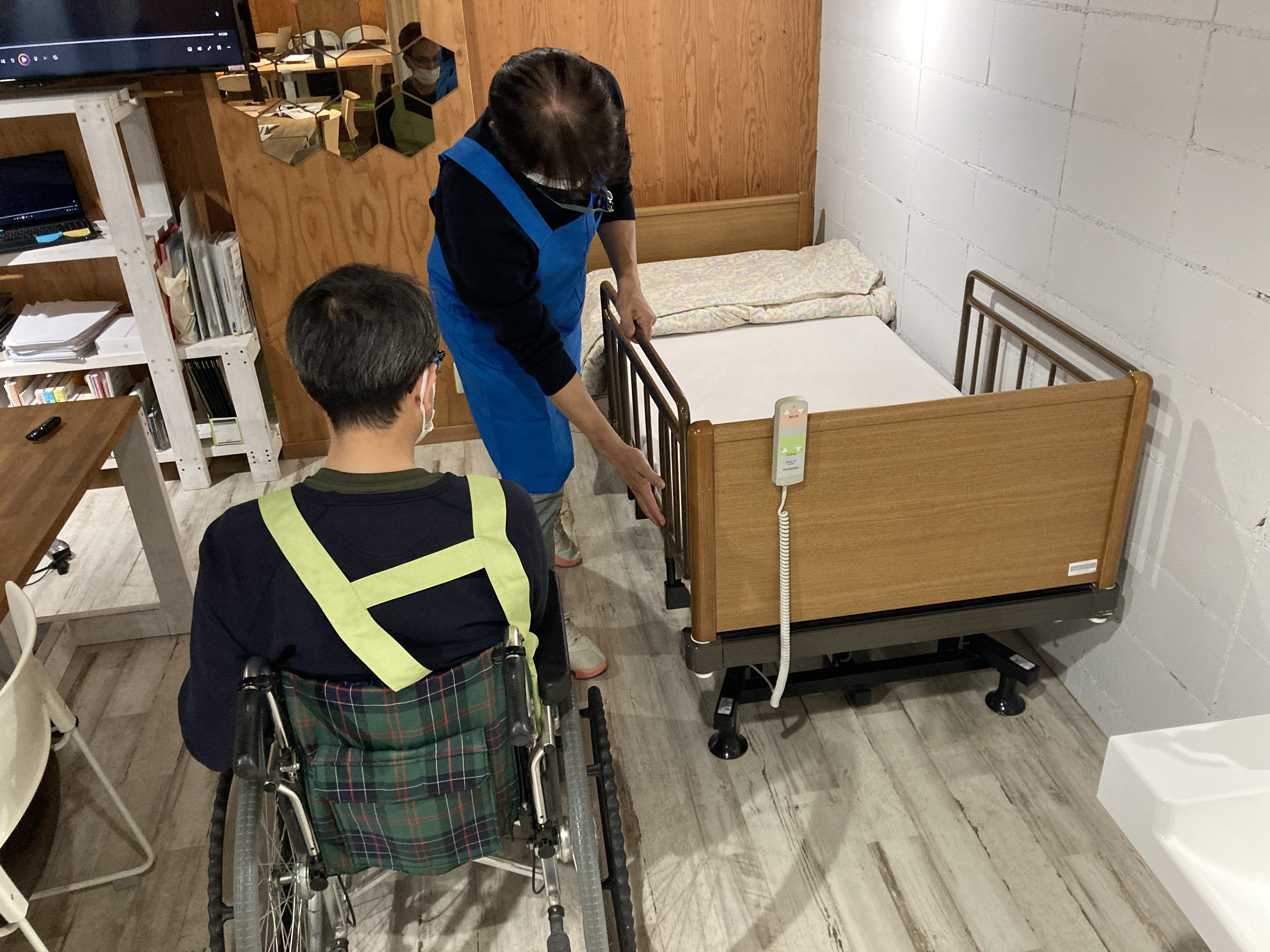 ・久しぶりに車いす介助を実践し体力を消耗しました。改めて現場の方々のご苦労を実感しました。