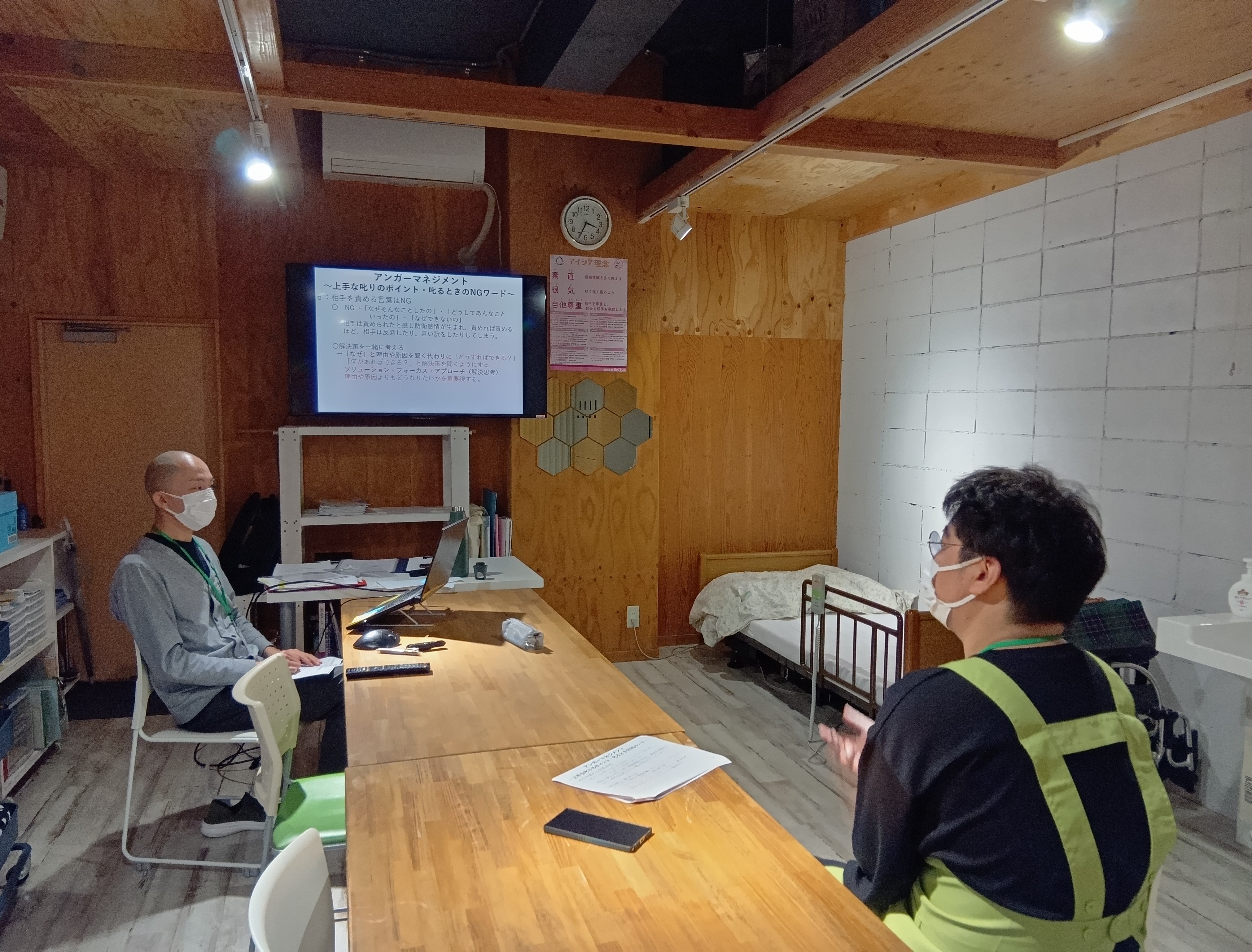 本日は、ぬくもあカレッジにてアンガーマネジメント研修を開催しました☆ テキストに沿って怒りの仕組み、怒りをコントロールする技術・方法について理解を深めます!! お一人の参加で座学2時間の研修でしたが真剣に取り組まれていました☆ ご入居者様にとって安全な環境で安心して生活頂けるように引き続き研修にて知識を高めていきます!! ☆受講者の声 ・アンガーマネジメントについて、自分だけではなく施設の皆が受けた方が良いと思いました。
