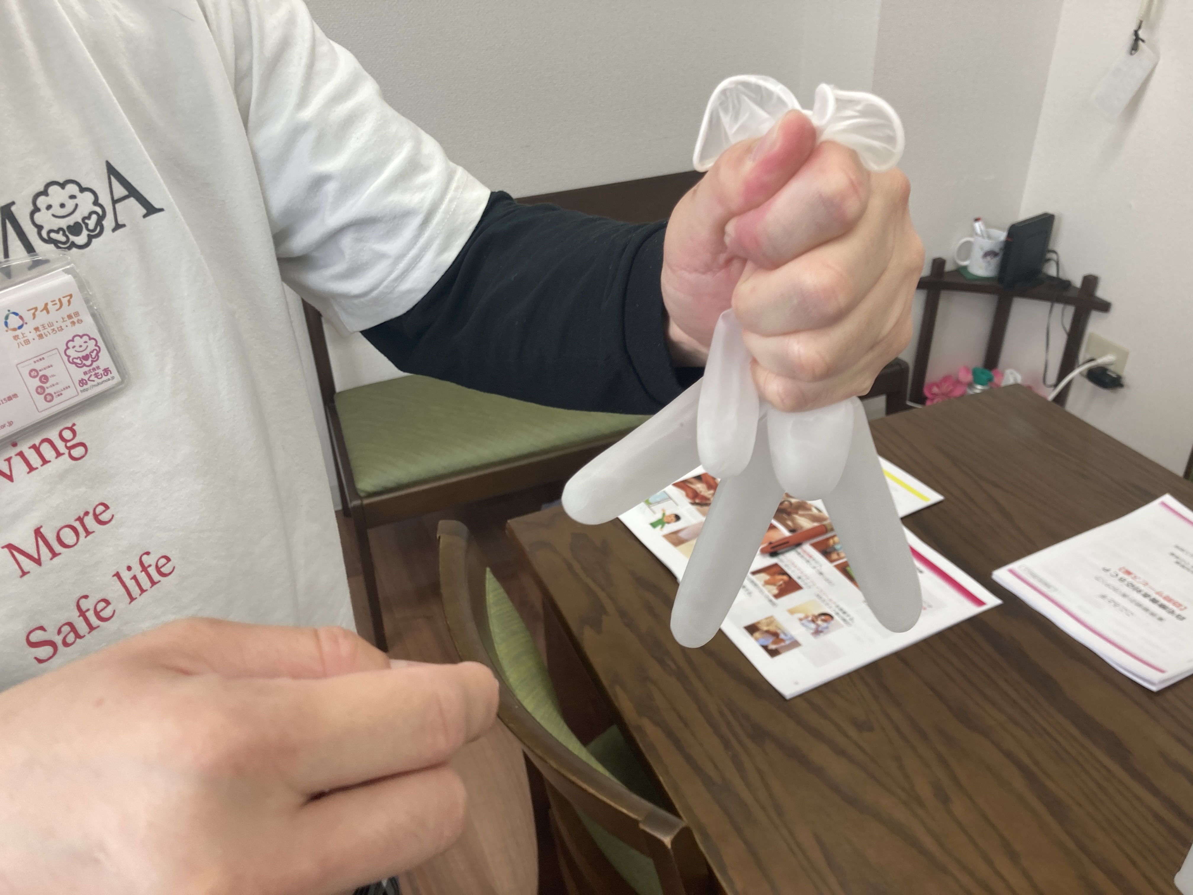・根拠を教えて貰いつつ、正しいガウンの着用方法や感染予防方法、アルコールや次亜塩素酸での消毒方法が学べた。